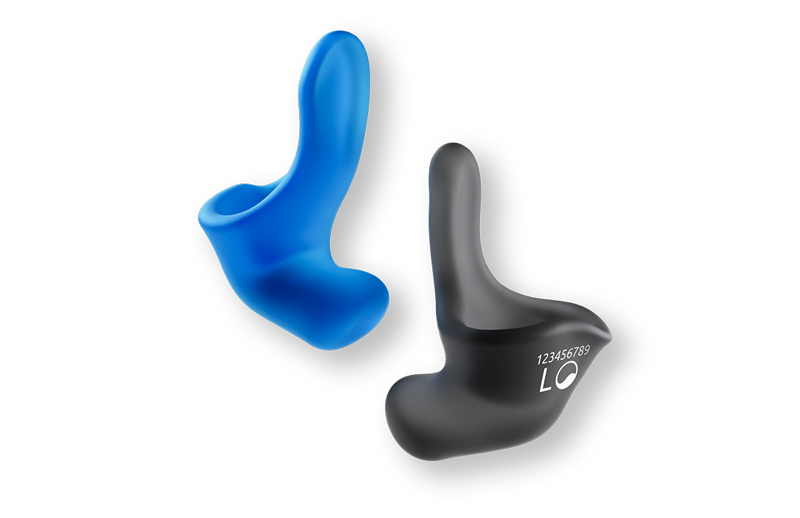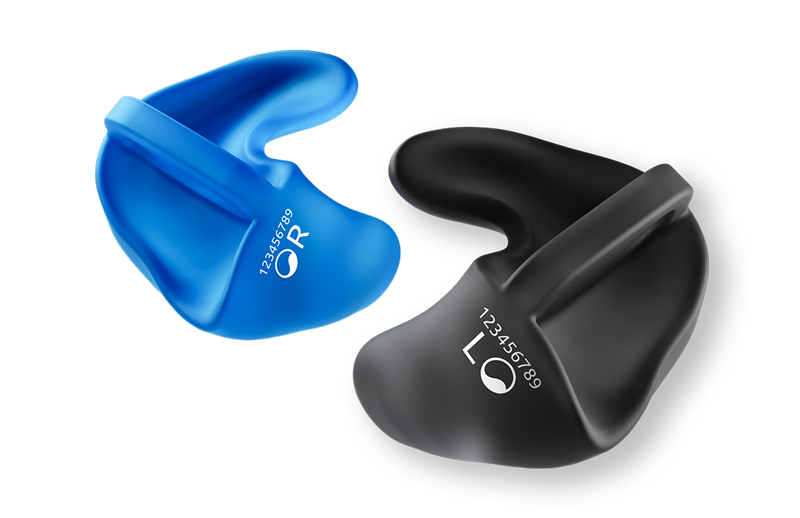 Unsere Otoplastiken sind standardmäßig mit einer Markierung für Links und Rechts versehen. Je nach Farbe der Otoplastik sind die Markierungen Schwarz oder Weiß.